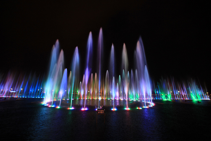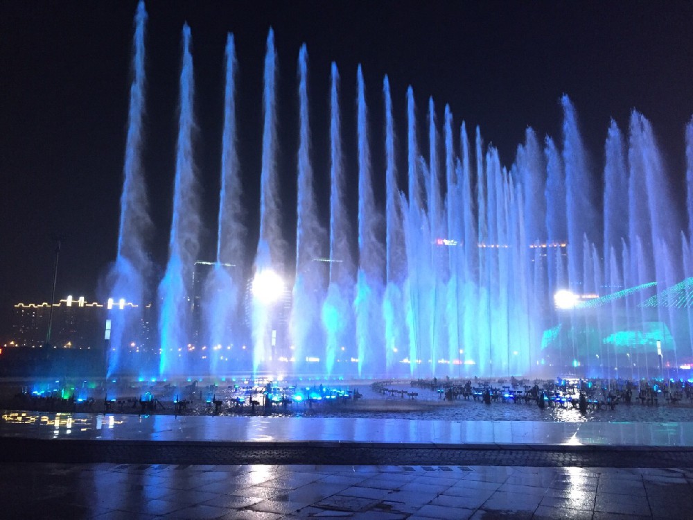西湖音乐喷泉长约126米,弧形部分宽约2米,整个音乐喷泉主要有七···